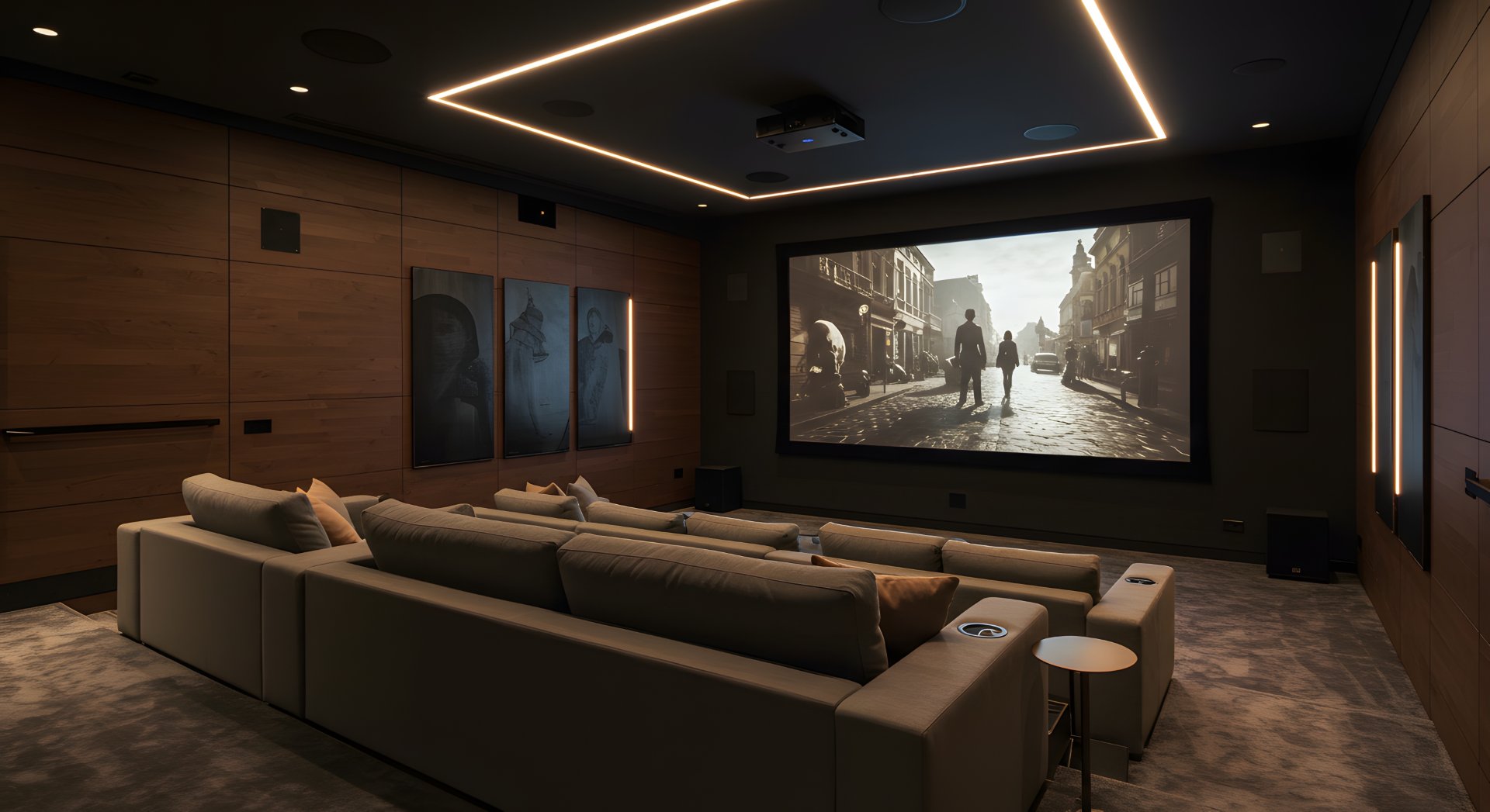 Bring the cinema experience home. We design acoustically tuned, visually stunning theaters with 4K projection, Dolby Atmos sound, and intuitive control — tailored to your space and budget.